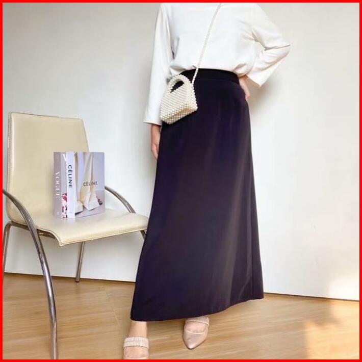 Rok Polos A-line Skirt Rok Polos Formal Bahan Shakila Rok Polos Hitam Putih Moca Basic Karet Pinggang Muslim Panjang Baw