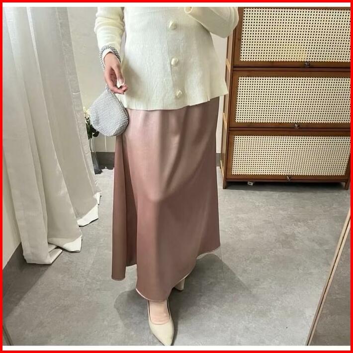 Hiza Mima Skirt Rok Maxi A-line Rok Satin Silk Panjang Wanita Bawahan