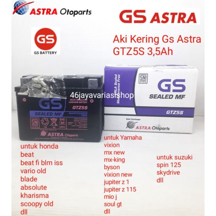 Aki GS ASTRA MF GSMF-GTZ-5S Beat Vario Scoopy Mio Soul Vixion jupiterz new115 kharisma suprax 125