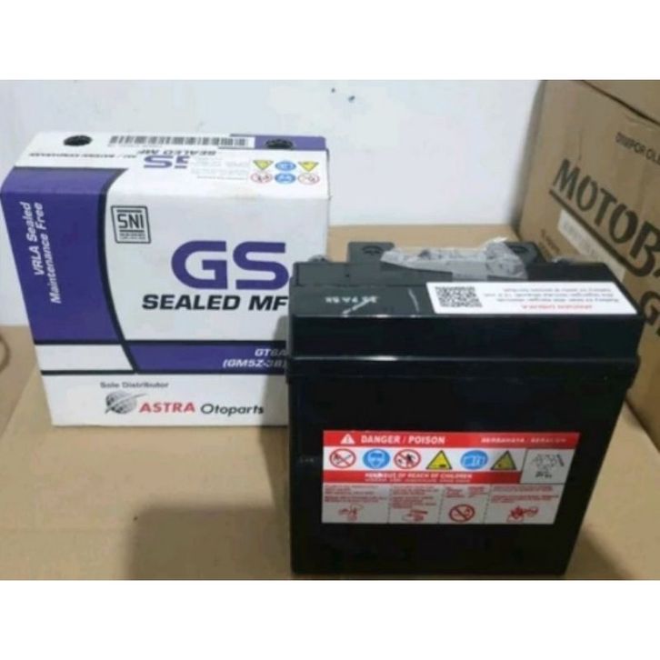 AKI KE GS ASTRA GT6A/GM5Z-3B 12V-5AH MF UNTUK MOTOR SUPRA GRAND MIO SUPRA FIT JUPITER Z VEGA R NEW