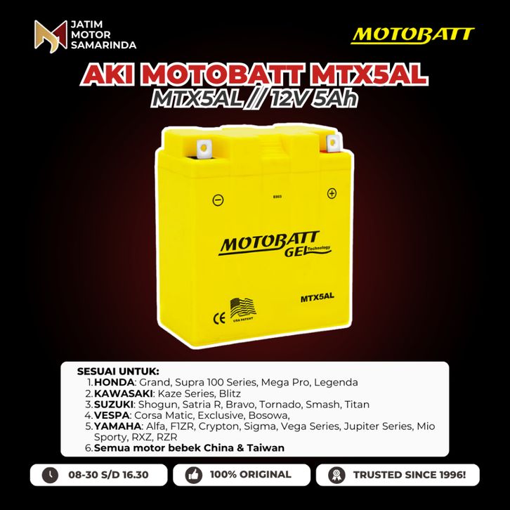 MOTOBATT Aki Motobat MTX5AL 5AL 12V 5Ah Aki Ke Untuk Grand Supra Kaze itz Shogun Satria R Smash