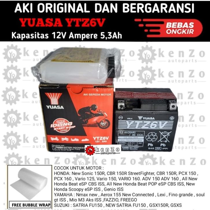 AKI MOTOR HONDA BEAT VARIO SCOOPY PCX ADV GENIO ISS ORINAL YUASA YTZ6V