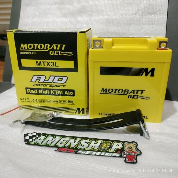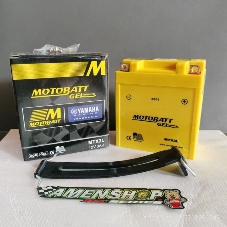 Aki motobatt rxking ,ninja R/SS,satria hiu,NSR orinal motobatt MTX3L 12V 3AH FREE KARET AKI