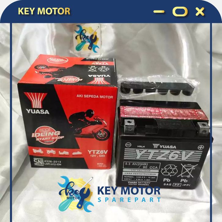 Aki / Accu Ke Motor Vario 125 - 15 / Pcx 15 / Nmax 22 / Aerox New Yuasa YTZ6V 1% Orinal