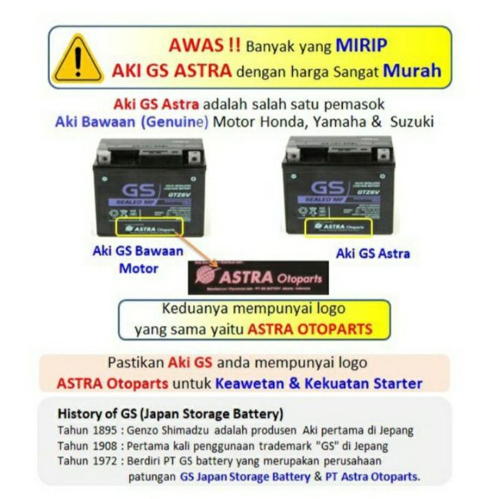 GS ASTRA AKI KE GS ASTRA GTZ6V MOTOR VARIO 125,15,SATRIA FU,N MAX,PCXC,B15R