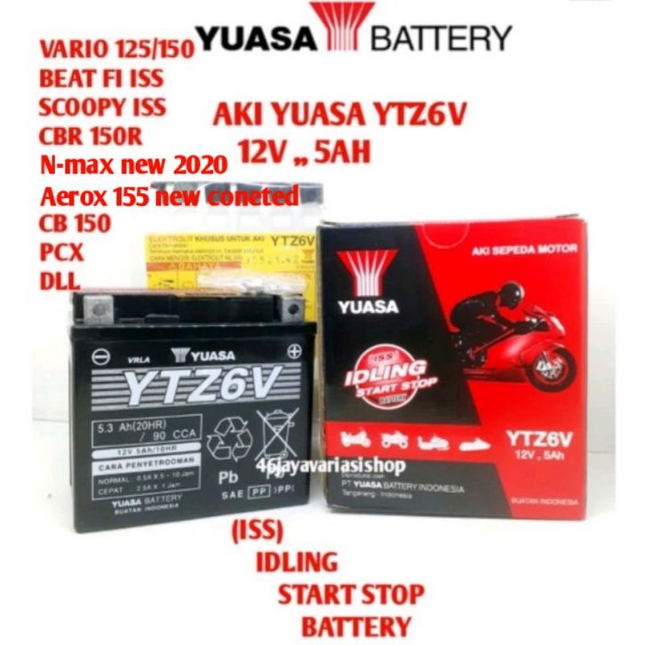 AKI YUASA YTZ6V 12V 5AH HONDA VARIO125/15 BEAT FI ISS SCOOPY FI ISS PCX FREEGO AEROX 155 NEW N-MAX