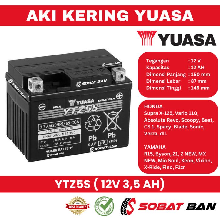 AKI KE YUASA YTZ5S MOTOR Vario 11, Mio Soul GT, Beat, Vixion YUASA YTZ5S Aki Ke 12V 3.5A