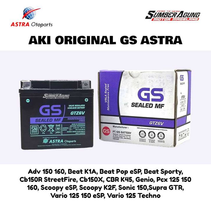 Aki GS ASTRA MF GTZ-6V Satria FU BeAT eSP CBS ISS, CBR 15 R,New Sonic 15R, Vario 125