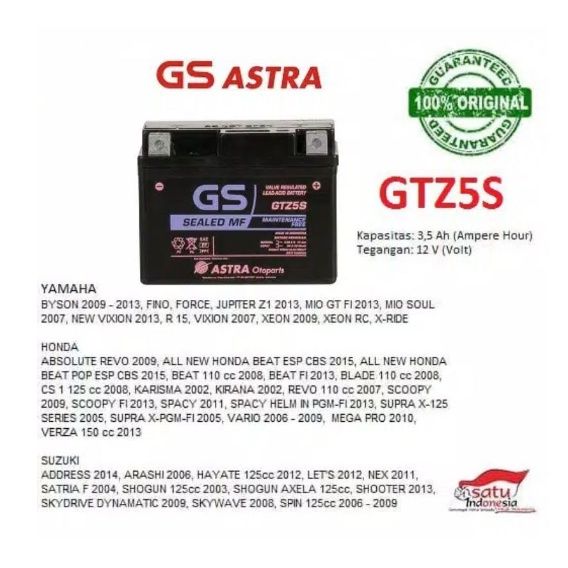 AKI GS ASTRA GTZ5S UNTUK MOTOR HONDA YAMAHA ZUZUKI KAWASAKI