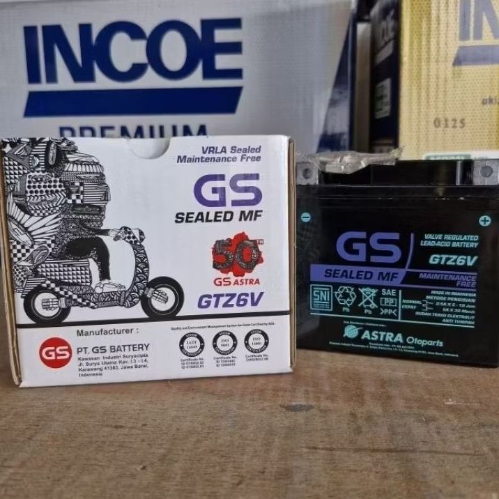 Aki GS ASTRA GTZ6V Satria Fu,GSX15,CBR15,R15,VARIO15,PCX