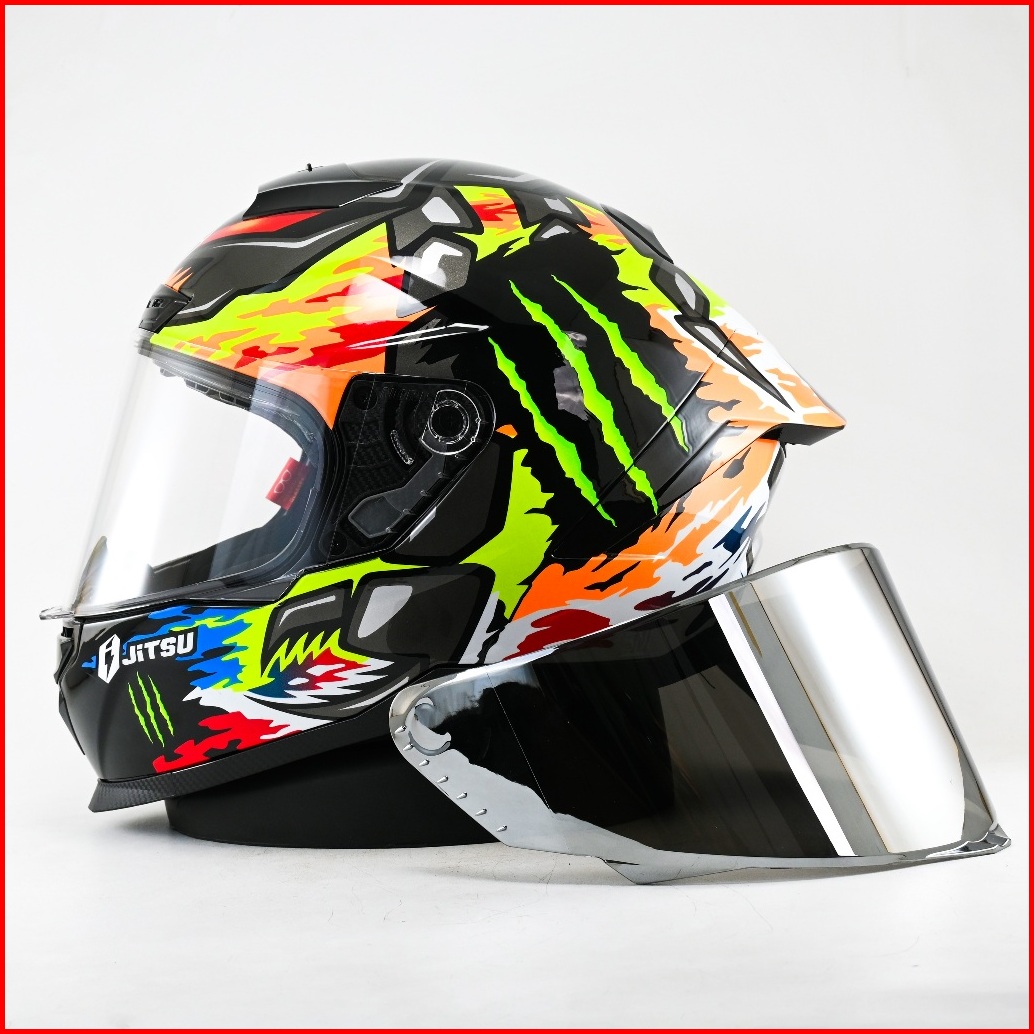 Helm Cowok Keren Full Face Jitsu Air1 Motif Elemen Scorpius Paket Ganteng Free Flat Visor Clear Sni