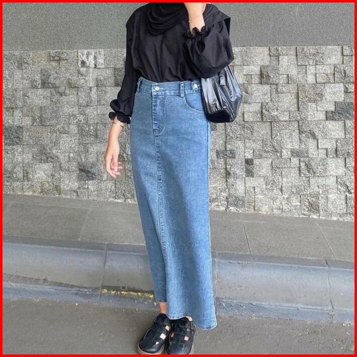Rok Jeans Theana Skirt Highwaist Rok Jeans Belah Depan Rok Jeans Span Low Waist