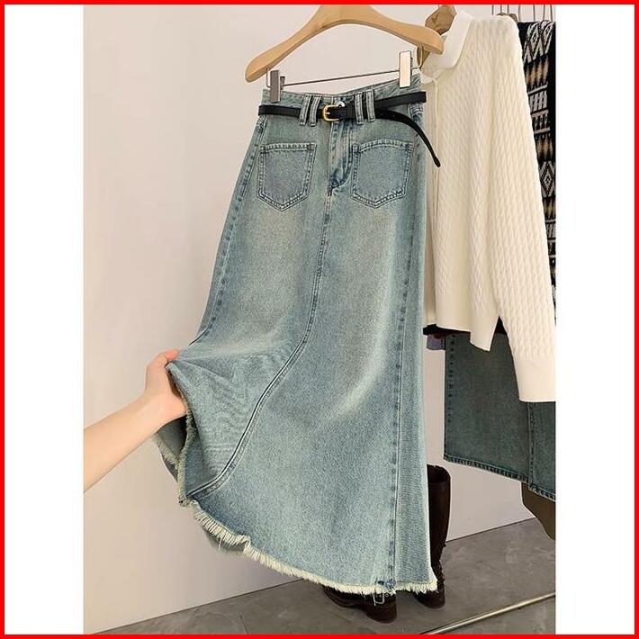 Long Skirt Denim Rok Korean Style Jumbo Highwaist Denim Skirt Span Premium Rok Rawis Kancing Retro Ootd Fashion Rok Jean