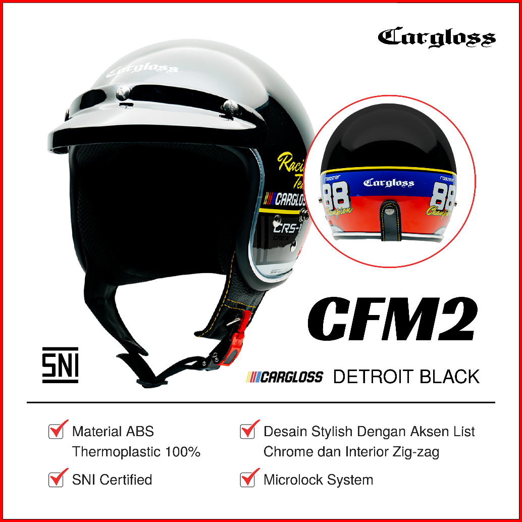 Cargloss Cfm 2 Nascar Series Retro Helm Half Face - Detroit Deep Black