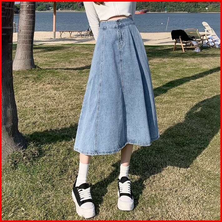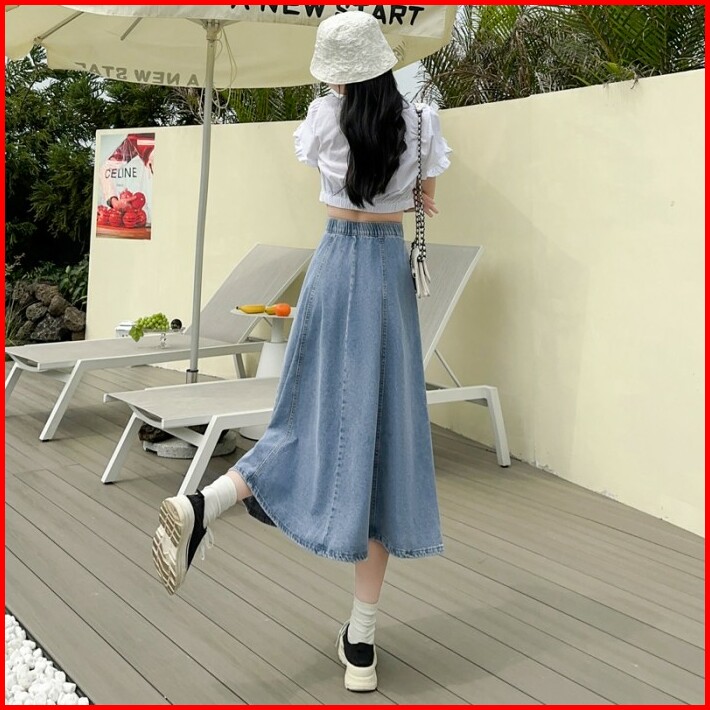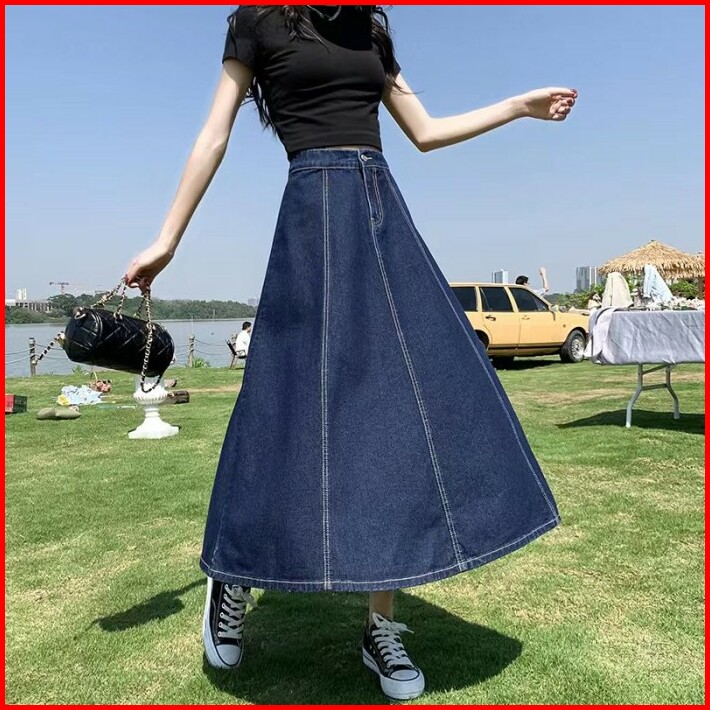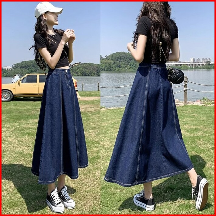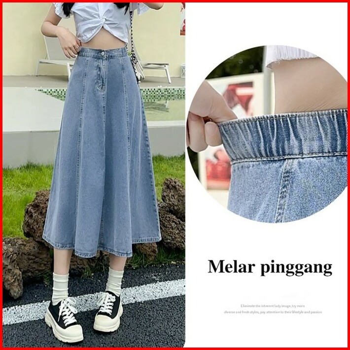 Rok Span Plisket Premium Jumbo Rok Korean Style Rok Payung Rok Span Rok Jeans Panjang Rok 7 8 Wanita Rok Midi