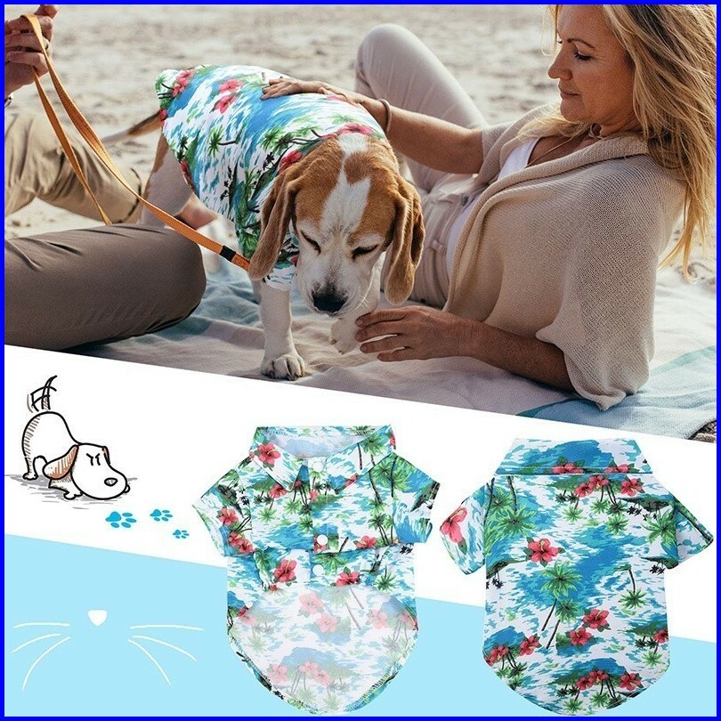 Folopets Baju Kucing Kostum Kaos Kemeja Hawaii Aloha Pet Aloha Hawai Shirt Clothes - T-shirt Dengan Berbagai Motif Lucu