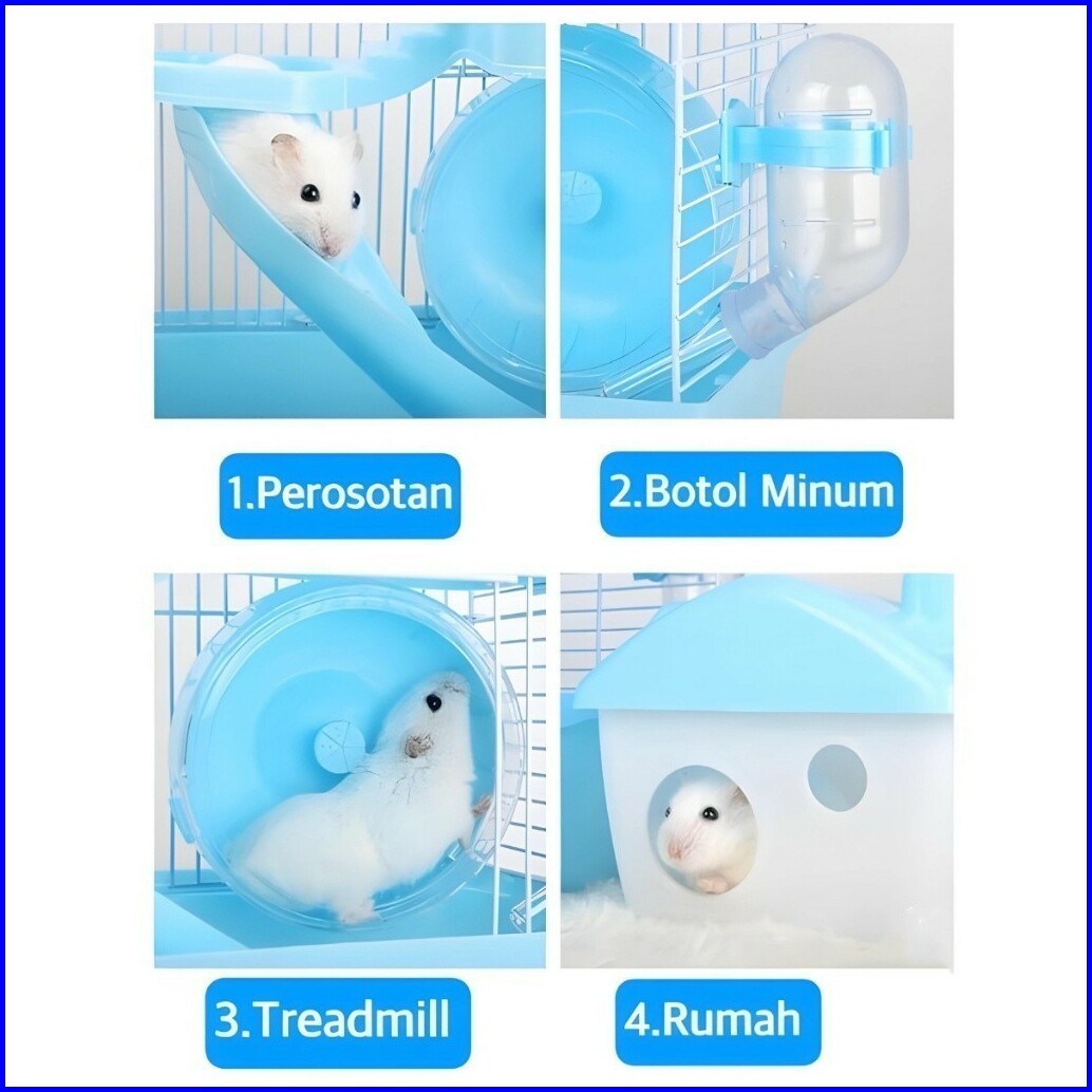 Folopets Kandang Hamster 2 Tingkat - Rumah Hemster Komplit - Kandang Hamster Tikus Burung Sugar Glider Landak Mini