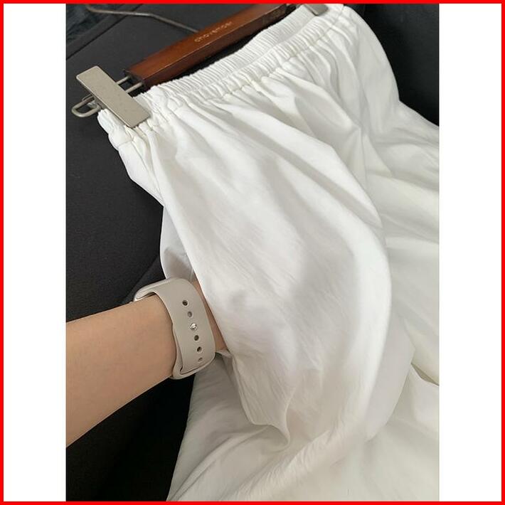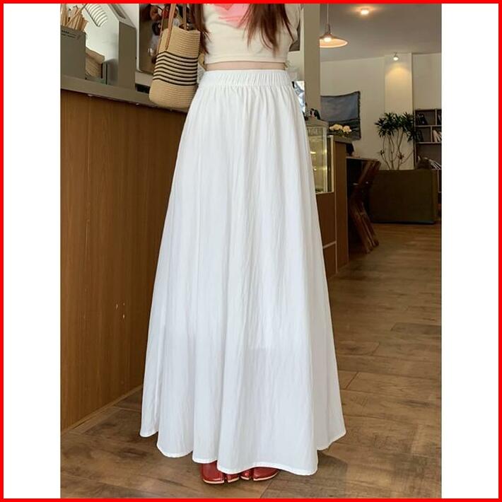 Rok Payung A-line Pinggang Tinggi Putih Modis Rok Serbaguna Wanita Gaya Korea Kaos Panjang