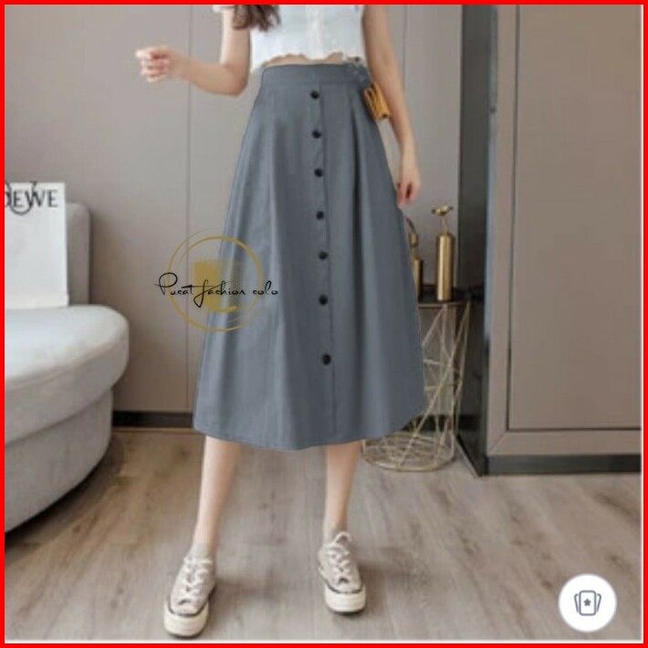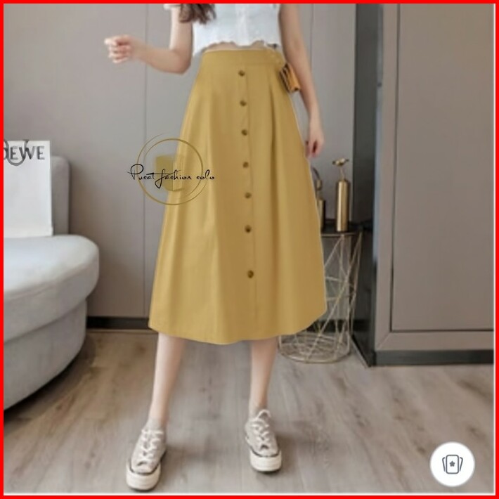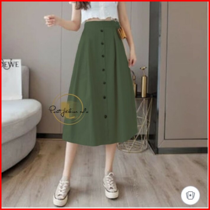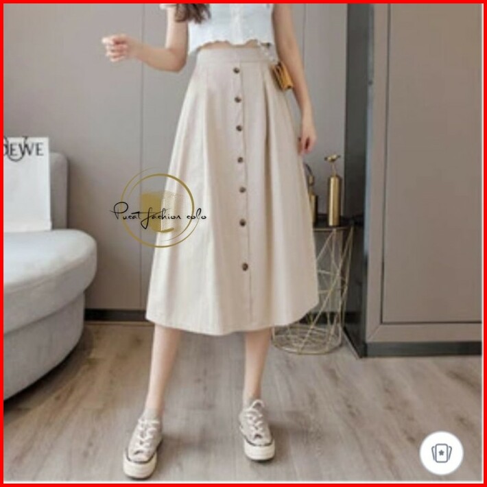 Rok Wanita Midi Skirt 7 8 A-line Polos Bahan Twill Strecht Korean Style Casual Santai Fit To Xl