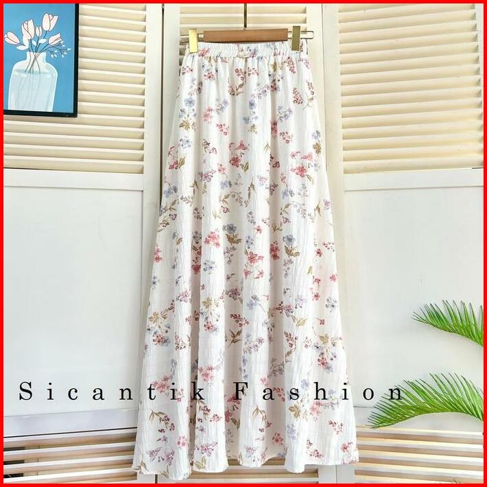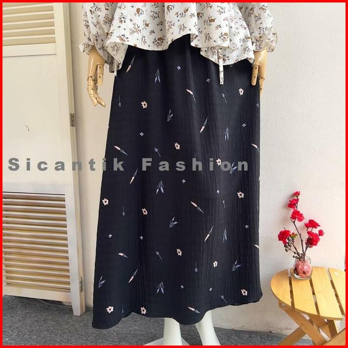 Rok Wanita Motif Korean Style Rk A-line Rok Panjang Karet Bawahan