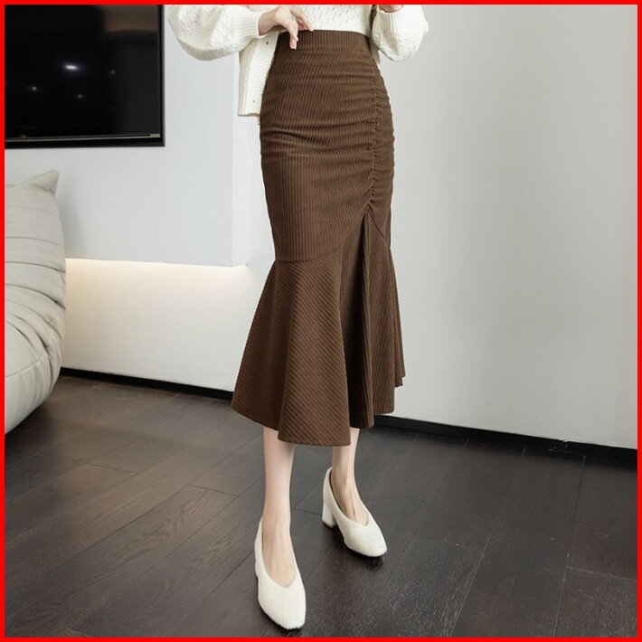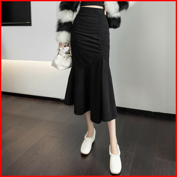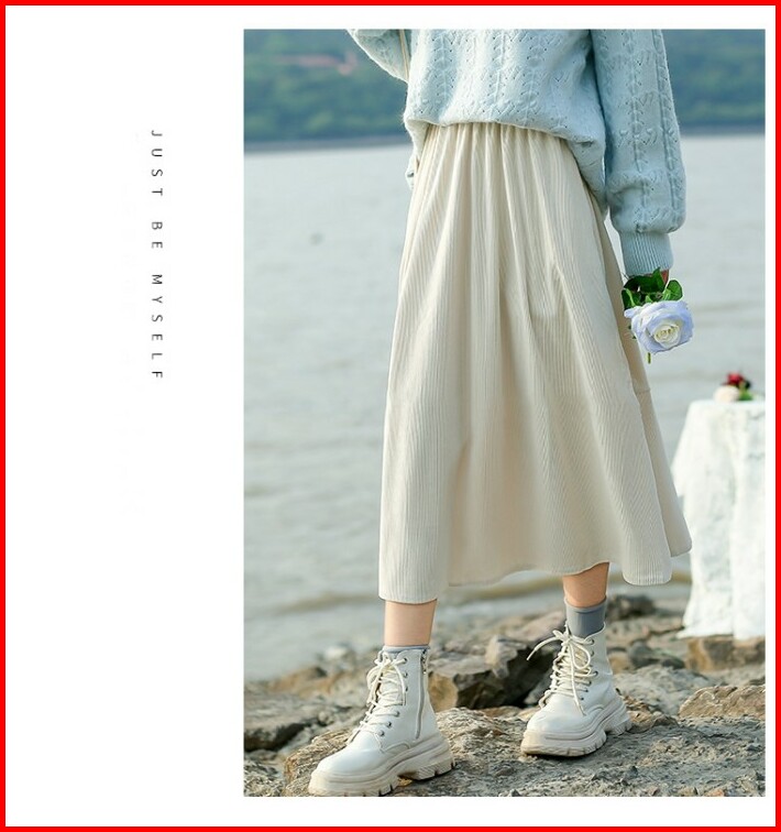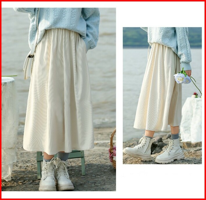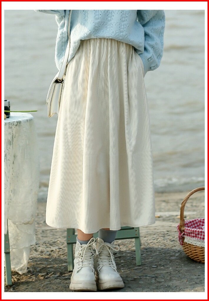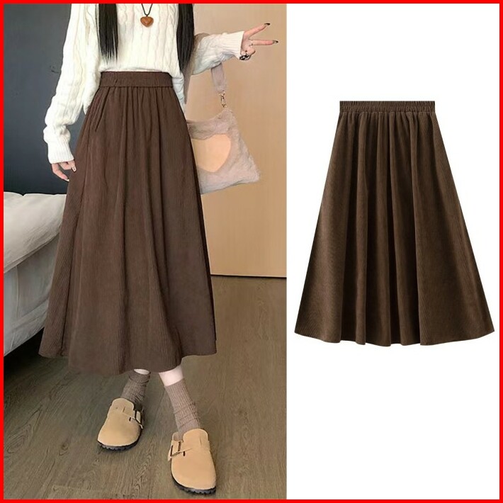 Rok Corduroy Rok Payung Vintage Skirt Rok Korean Style Rok A Line High Waist Midi Skirt Terbaru 2024
