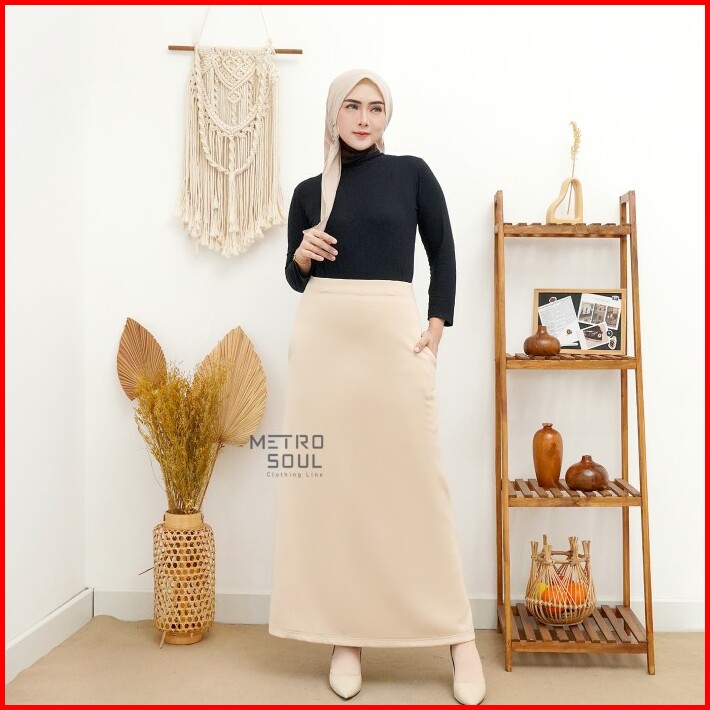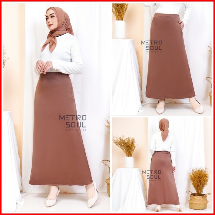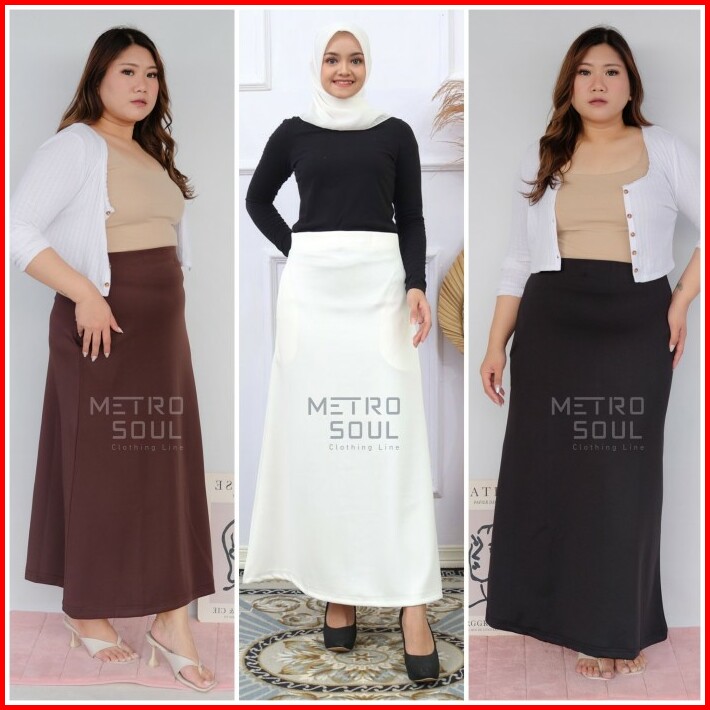Rok Kerja Panjang A Line Scuba Skirt Stretch Jumbo Standar Bigsize