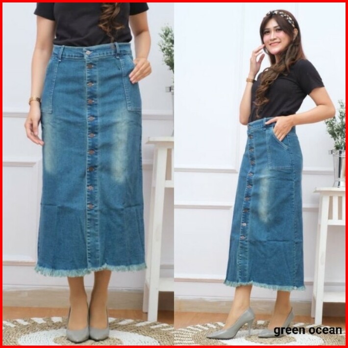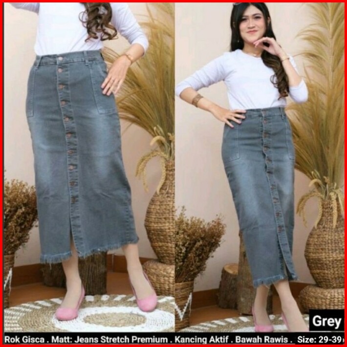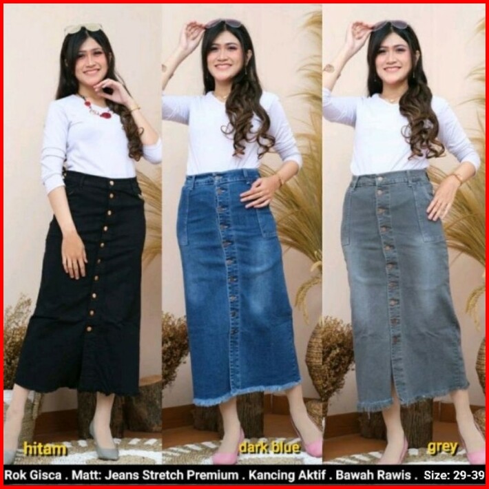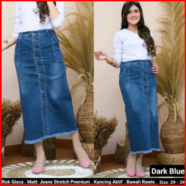 Rok Jeans Span Panjang Gisca Kancing Depan Murah 29-36