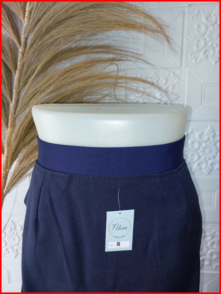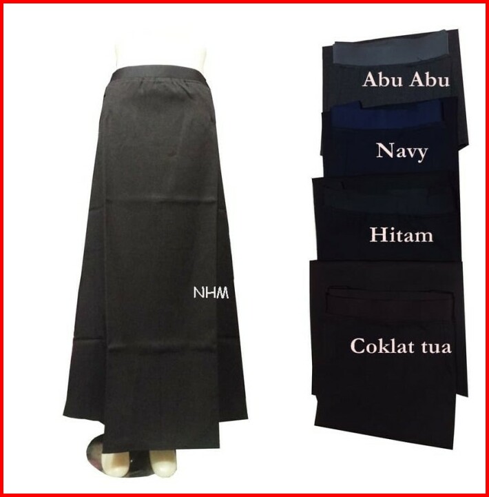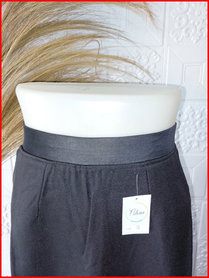 Rok Kerja Panjang Hitam Formal Pinggang Karet A Line Uk S