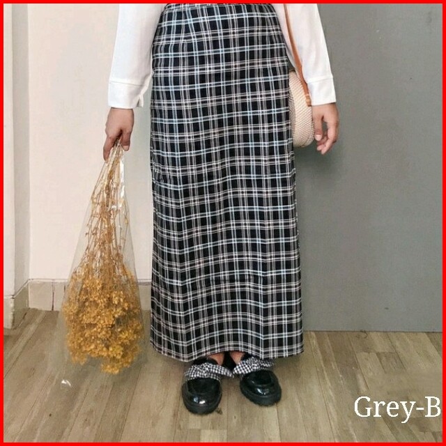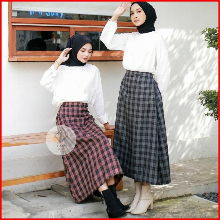 Thenext Amber Gingham A-line Rok Kotak Panjang Korean Style