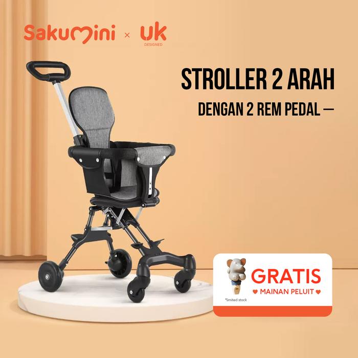 Sakumini Foldable Cabin Stroller Kereta Dorong Lipat Anak Bayi Travelling Kabin Hitam Roda Dorongan Kursi Black - Canopy