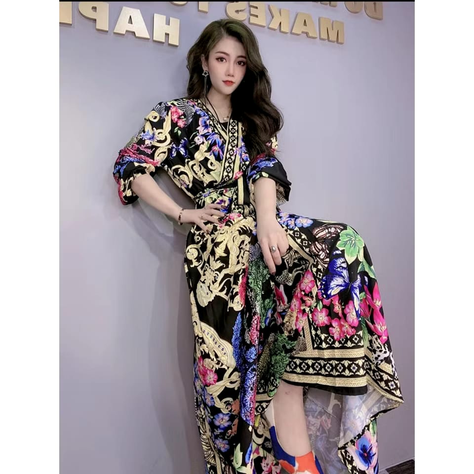 DRESS 94430 3M THREE M TM ARCHILLA WRAP MAXI DRES PREMIUM FASHION KOREA - Galery store