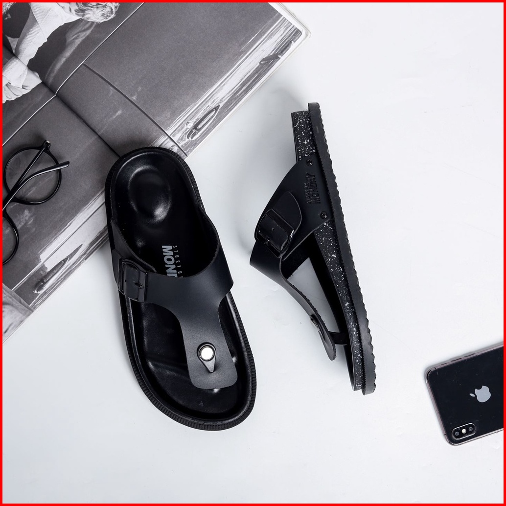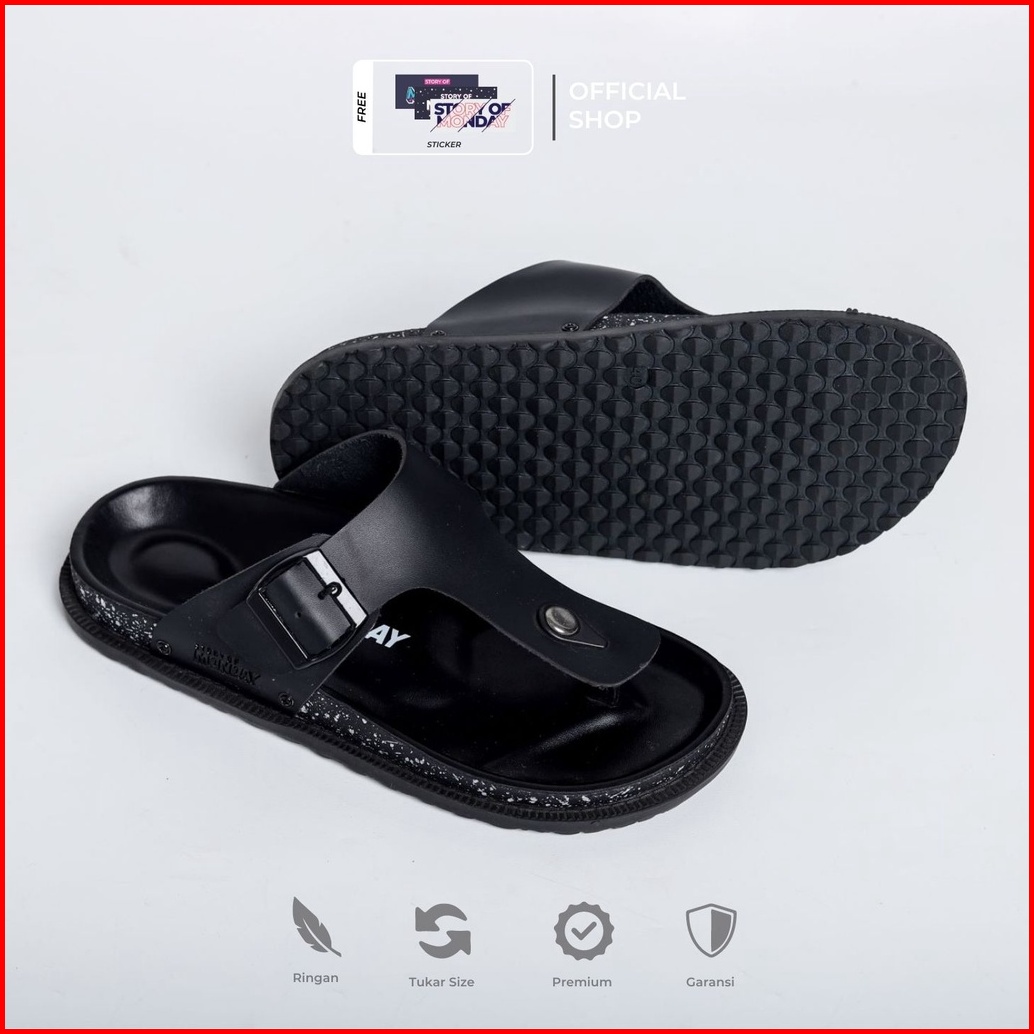 Mndy - Asta Neo Full Black - Sandal Slop Kulit Casual Pria Sendal Distro Original