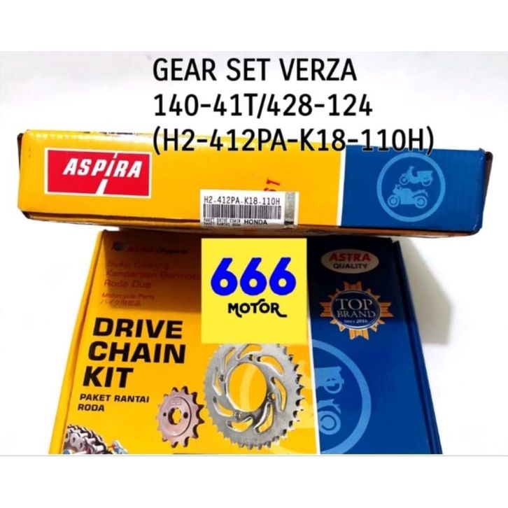GEAR SET , GIR SET ASPIRA K1 ORI MOTOR HONDA VERZA 15 1SET DEPAN BELAKANG PLUS RANTAI