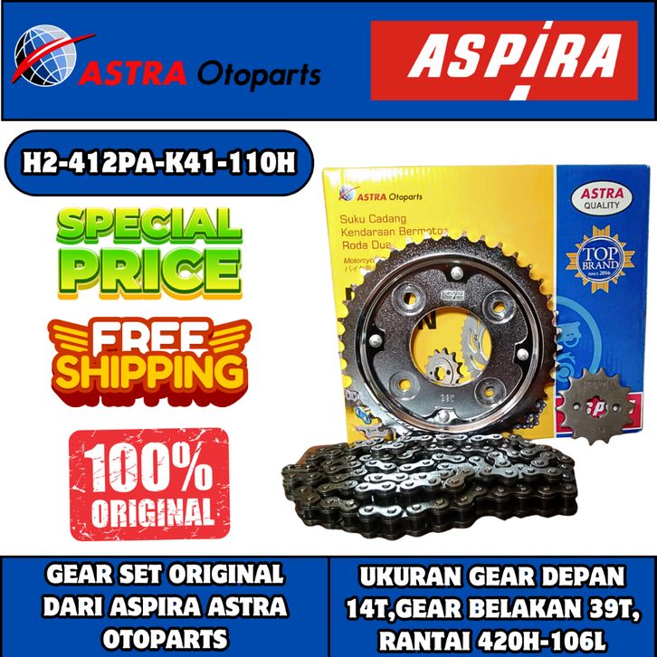 Gir Set Aspira K41-11H Untuk Motor SUPRA X 125 FI NEW 214-224 1 Set Gear Depan Belakang +Rantai
