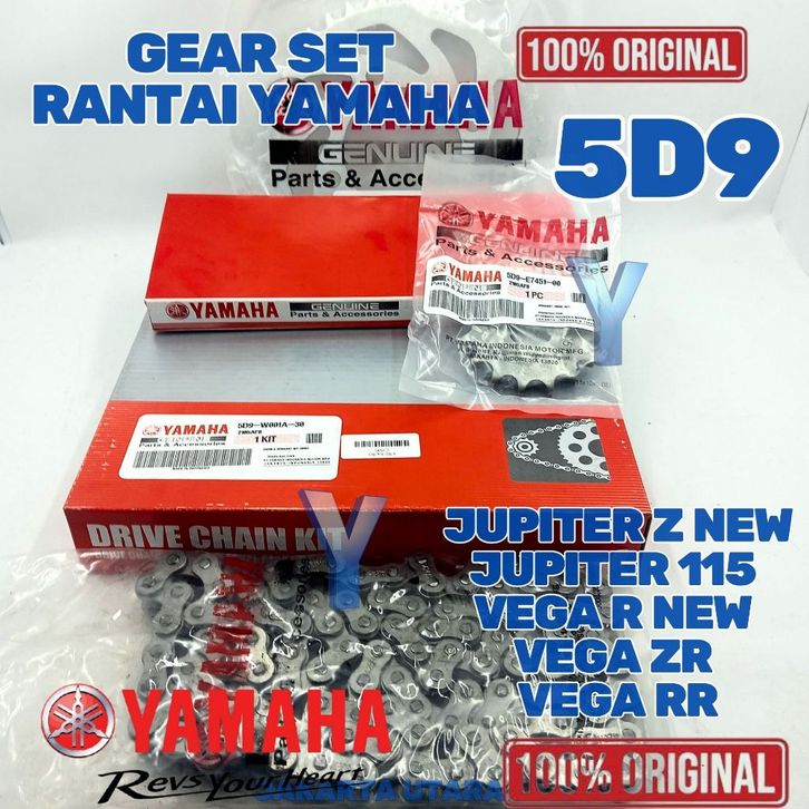 Gear Set + Rantai UK 15T, 4T Jupiter Z New Robot, Vega ZR KUALITAS ORINAL - Gear 5D9