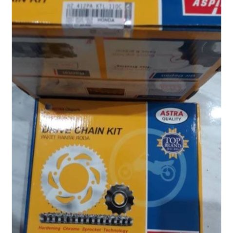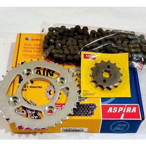 GEAR SET DEPAN BELAKANG PLUS RANTAI NEW SUPRA FIT REVO ASPIRA KTL ORI NEW ASTRA OTOPART