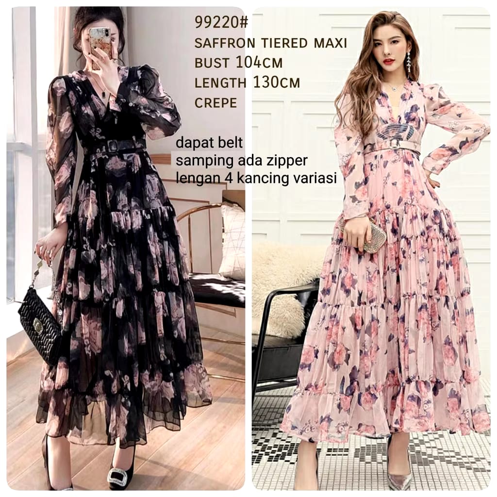 DRESS 99220 3M THREE M SAFFRON TIERED MAXI DRES PREMIUM KOREA - Galery store