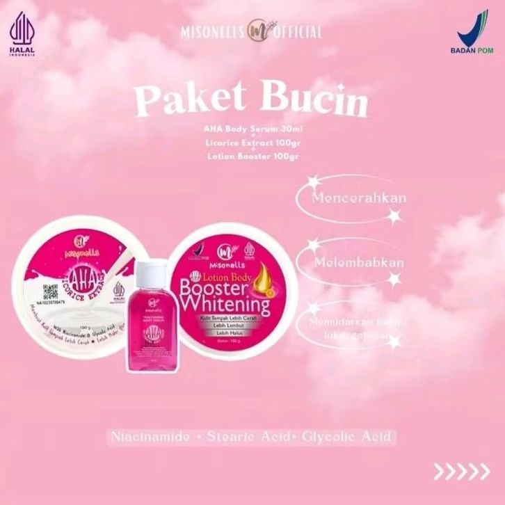 (3PCS) PAKET BUCIN MISONELLS BLEACHING AHA BODY SERUM BODY LOTION BOOSTER WHITENING PEMUTIH BADAN