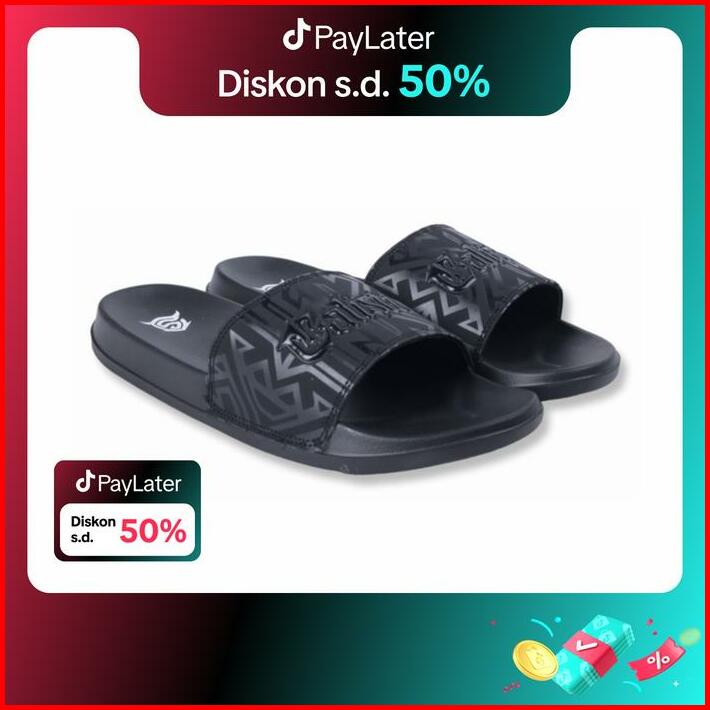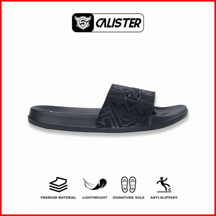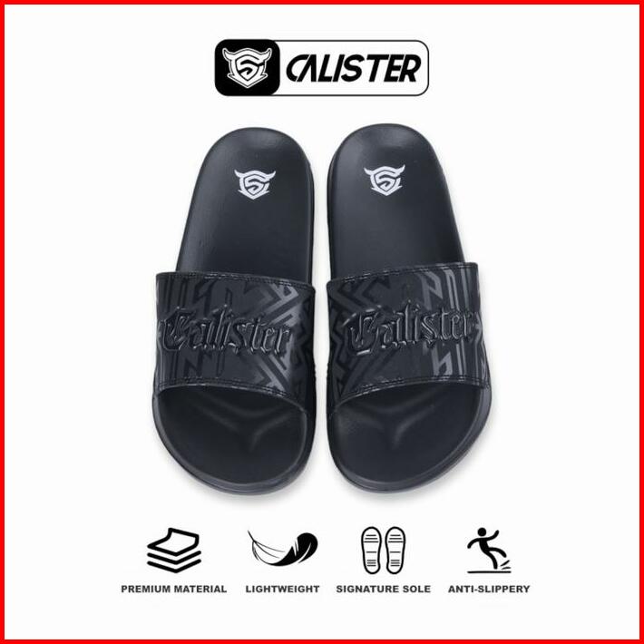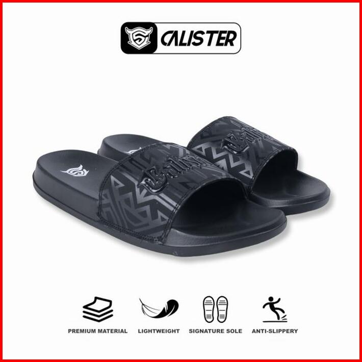 Calister Sandal Selop Pria Full Hitam Evolution Font Shoes Karet Sendal Antiselip Simpel