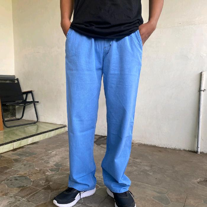 Celana Jeans Pria Panjang Korean Style Oversize Loose Celana Kulot Gombrang Denim Nyaman - Cream, M