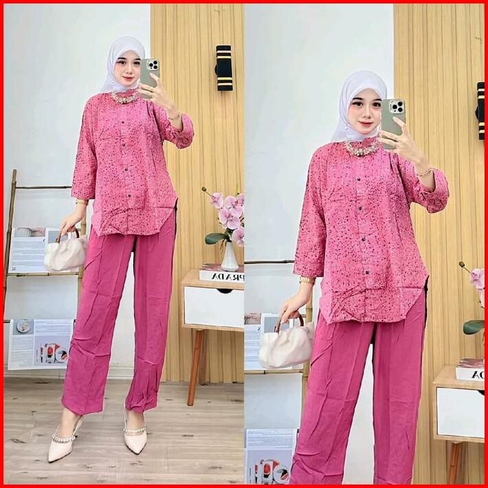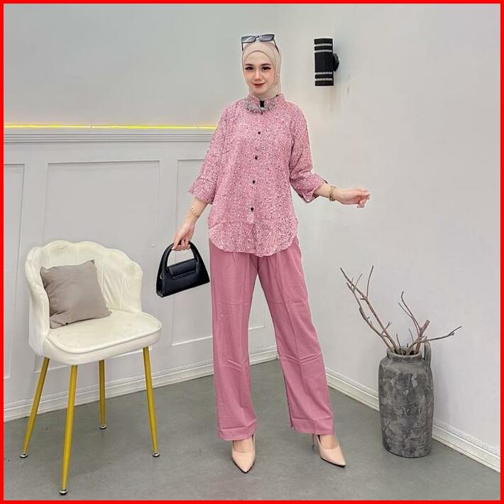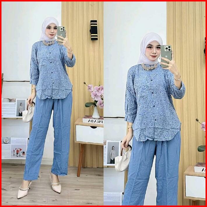 Setelan Kulot Motif Pasir Baju Wanita Modern One Set Daun Setelan Wanita Setelan Kekinian Setelan Terbaru Celana Panjang