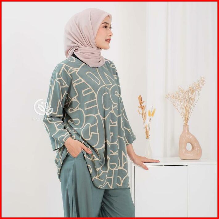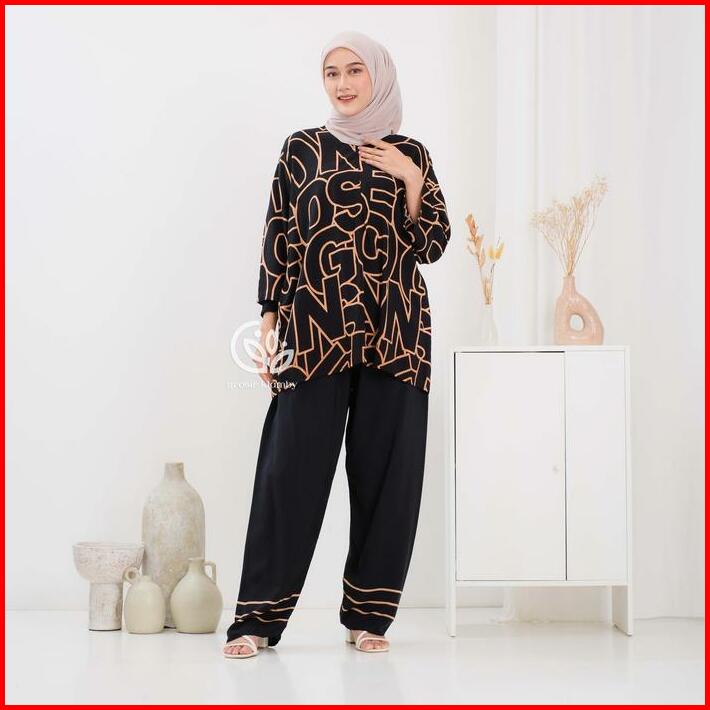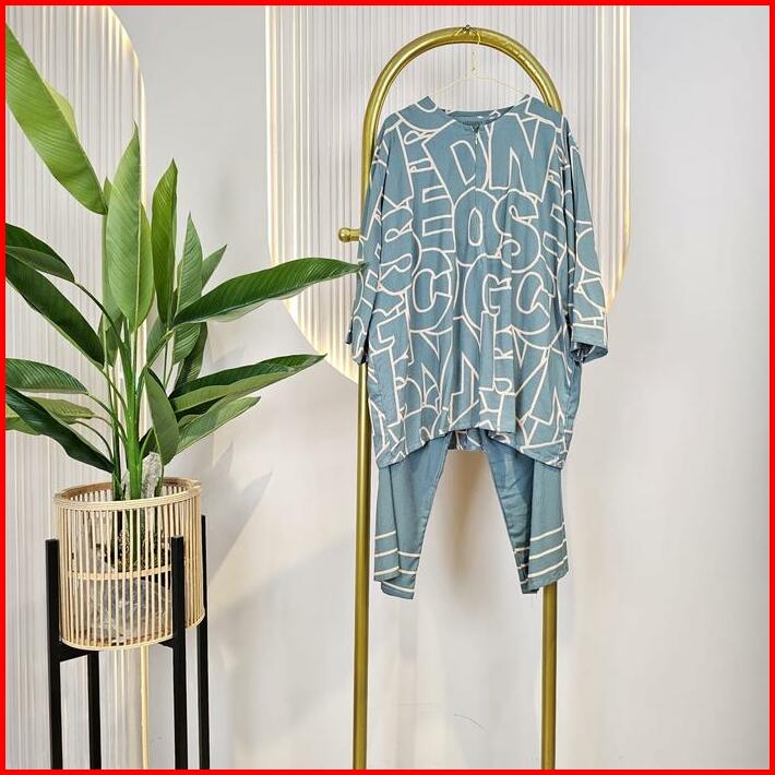 One Set Nisa Rayon Busui Jumbo Atasan Celana Wanita Motif Setelan