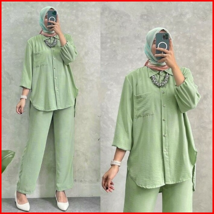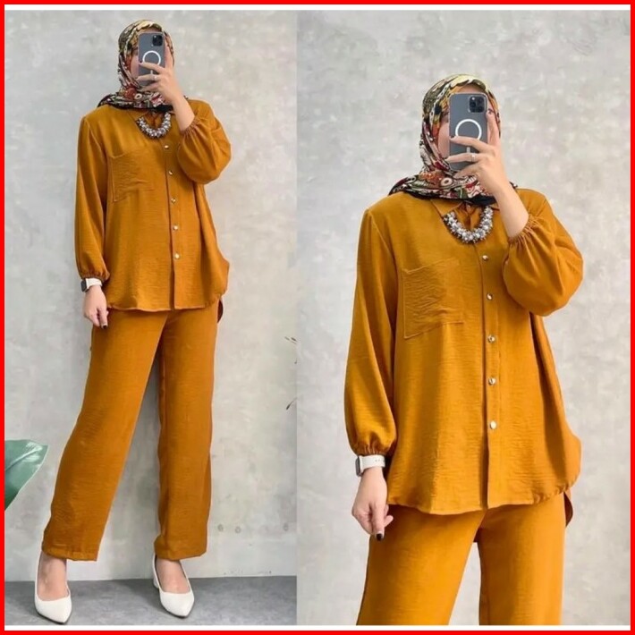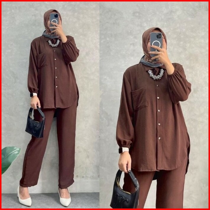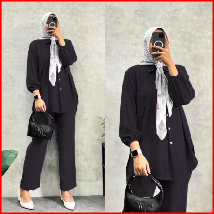 Amanda One Set Wanita Baju Setelan Crinkle Airflow Premium Polos