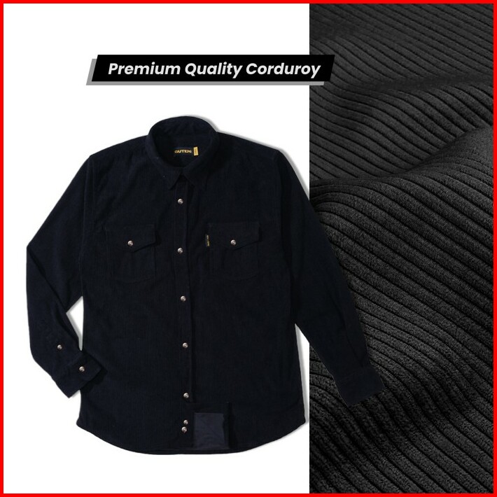 Guteninc Kemeja Outer Overshirt Muller Corduroy Black Shirt