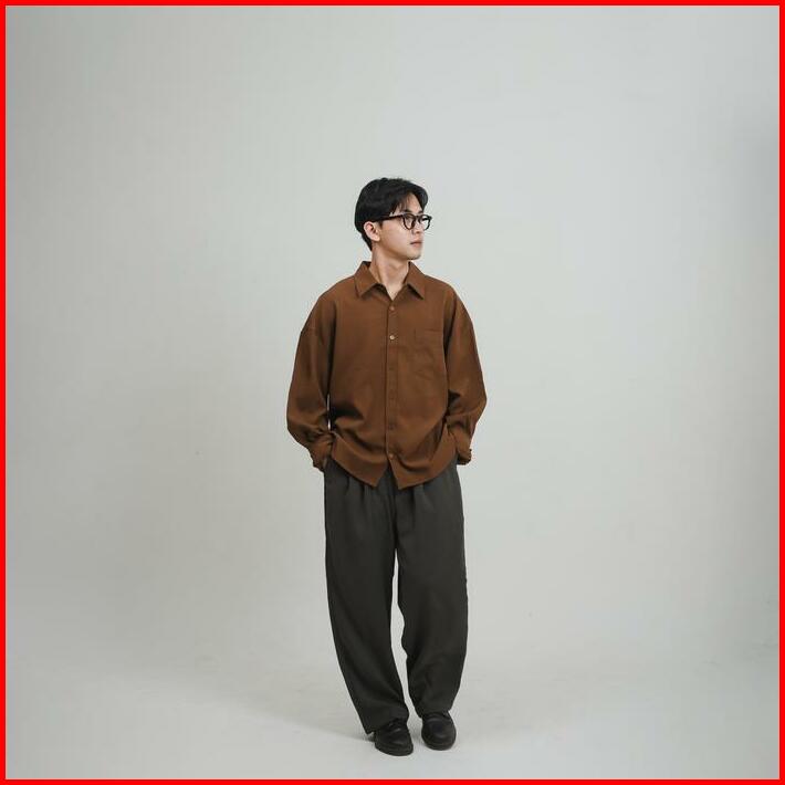 Roomfazza Kemeja Lengan Panjang Pria Oversized Kasual Kerja Atasan Casual Formal