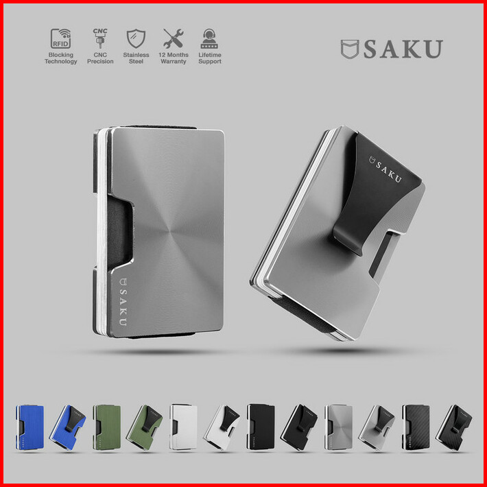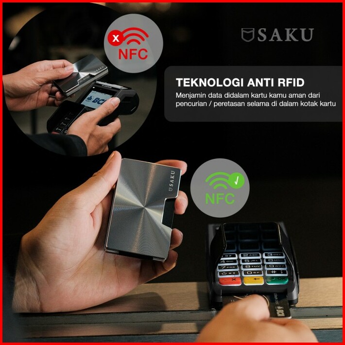 Saku Dompet Kartu Pria Rfid Smart Wallet Card Holder Mini Metal
