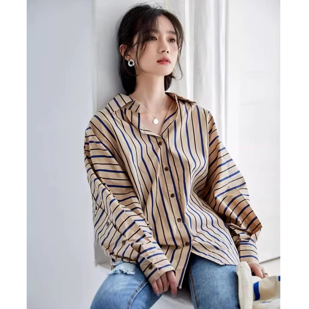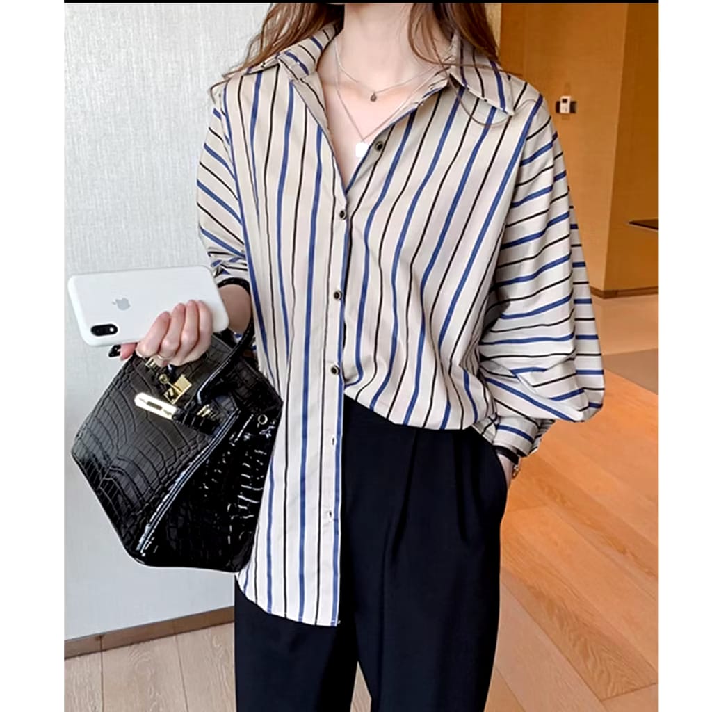 KEMEJA 4100 3M THREE M SAMANTHA STRIPED SHIRT PREMIUM KOREA -Galery store