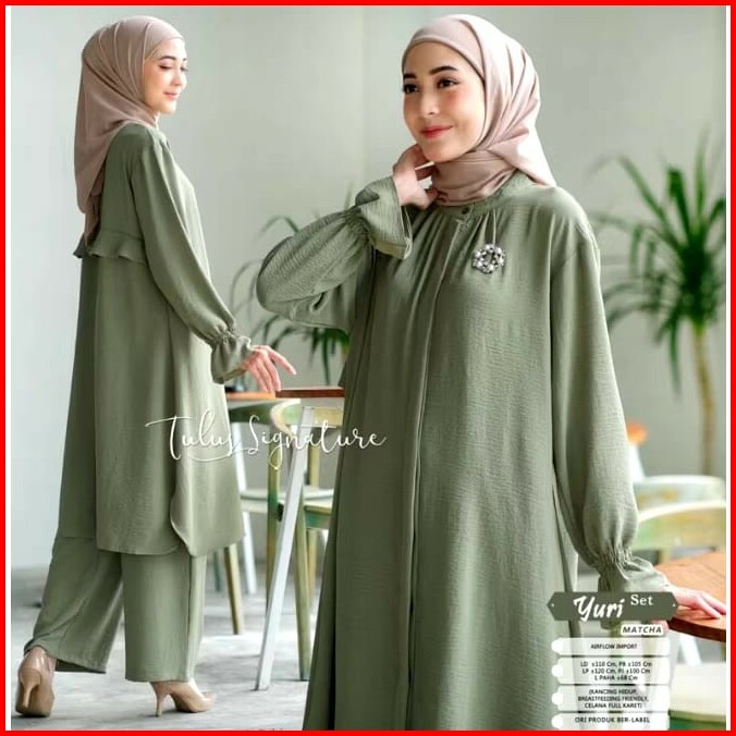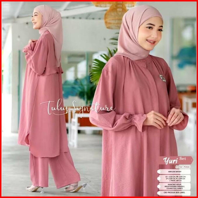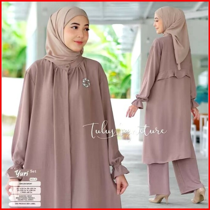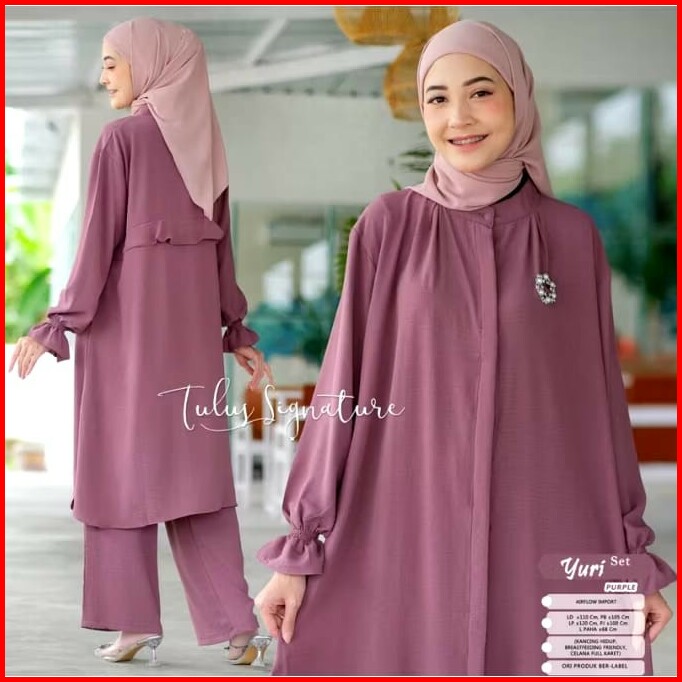 Terbaru Yuri Set Long Tunik Baju Setelan Wanita Crinkle Airflow Setelan Yuri Jumbo Ld 120 One Set Yuri
