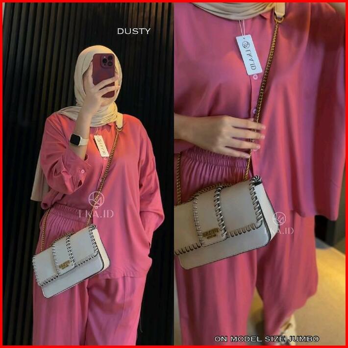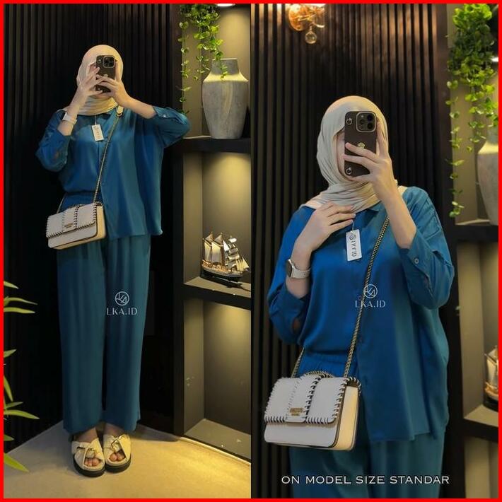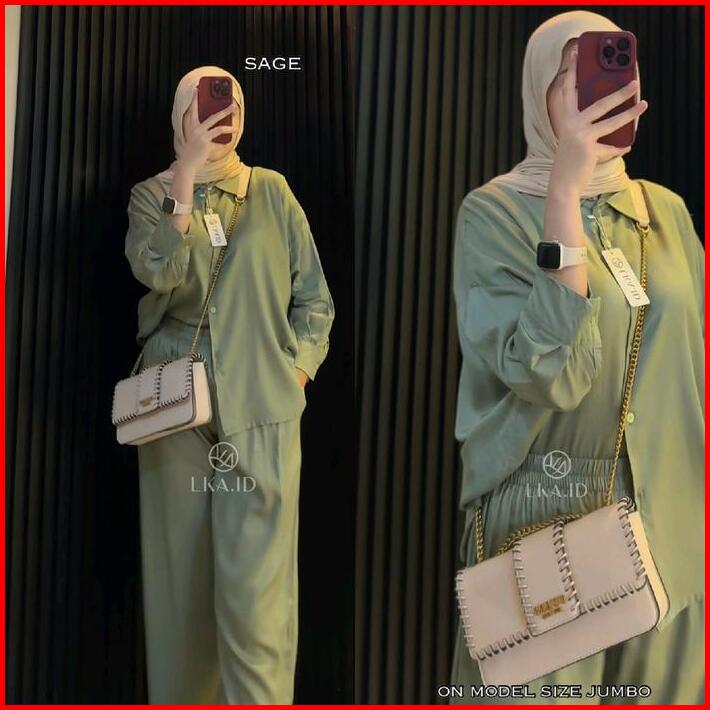 Lka One Set Polos Oversize Rayon Twill Premiun Setelan Kemeja Kulot Wanita Kekinian