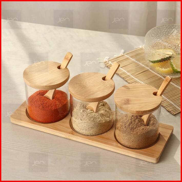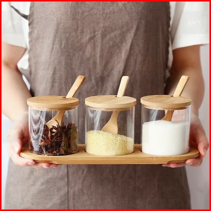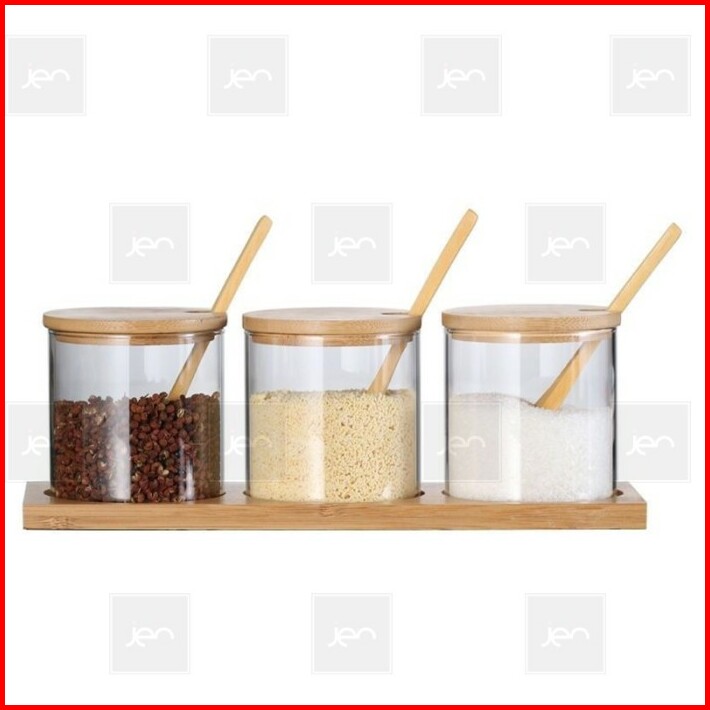 Tempat Bumbu Dapur Toples Kaca Spice 3 In 1